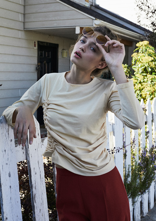 Top with hand-gathered front.